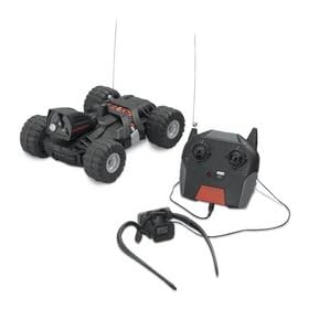 - Η κομψή R / C διαθέτει μια ενσωματωμένη κάμερα βίντεο που στέλνει ένα ζωντανό ζωοτροφών σε ένα flip-up οθόνης στο ακουστικό σας μέχρι 75 πόδια μακριά
